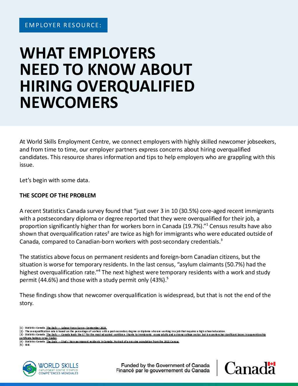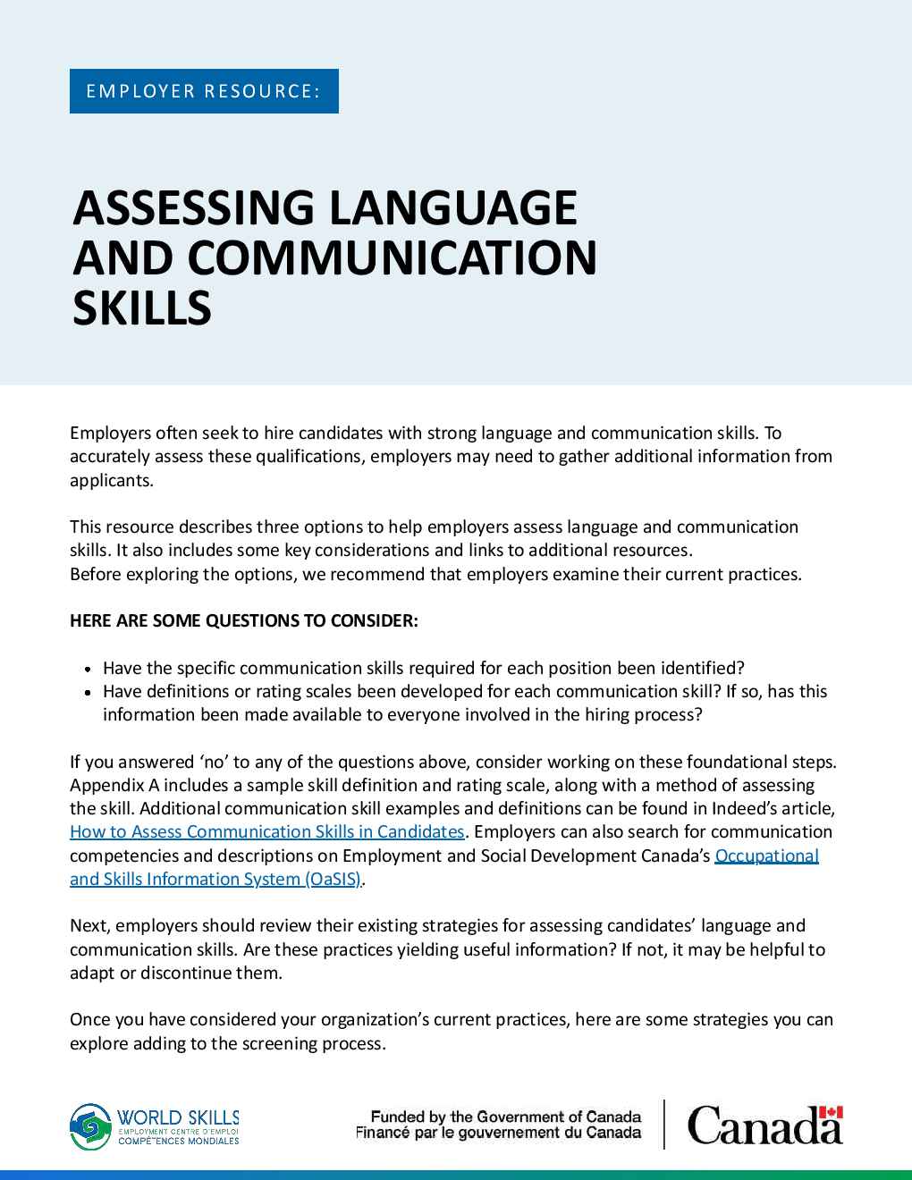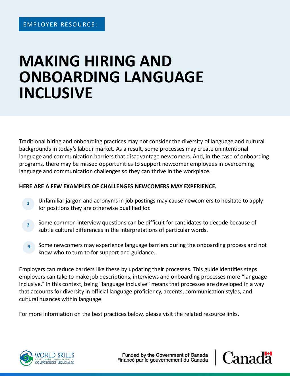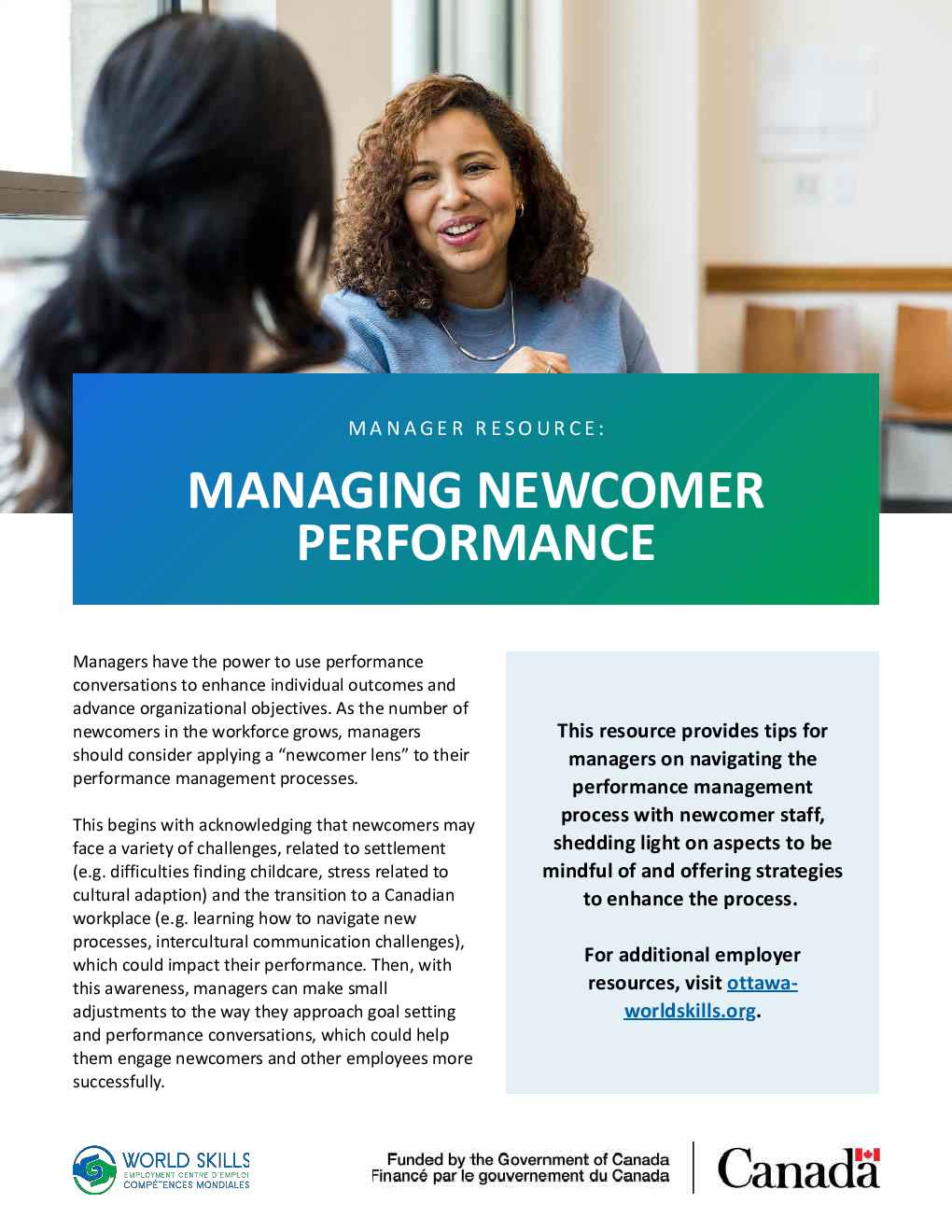 The resources below apply a newcomer lens to different aspects of the talent management process, from assessing language skills to managing employee performance. There are also two resources that organizations can share with newcomer employees.